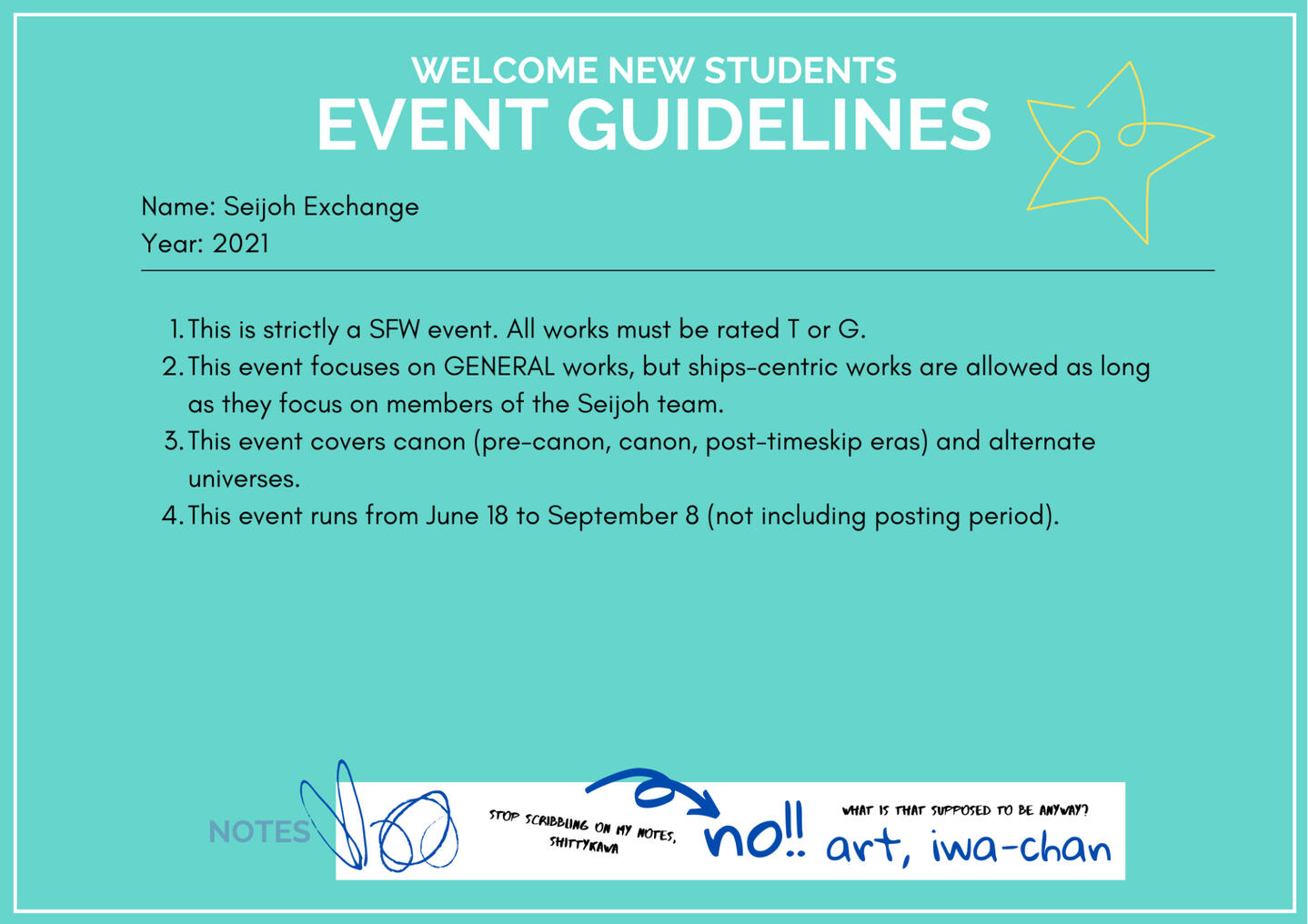 #2. This event focuses on GENERAL works, but ships-centric works are allowed as long as they focus on members of the Seijoh team.